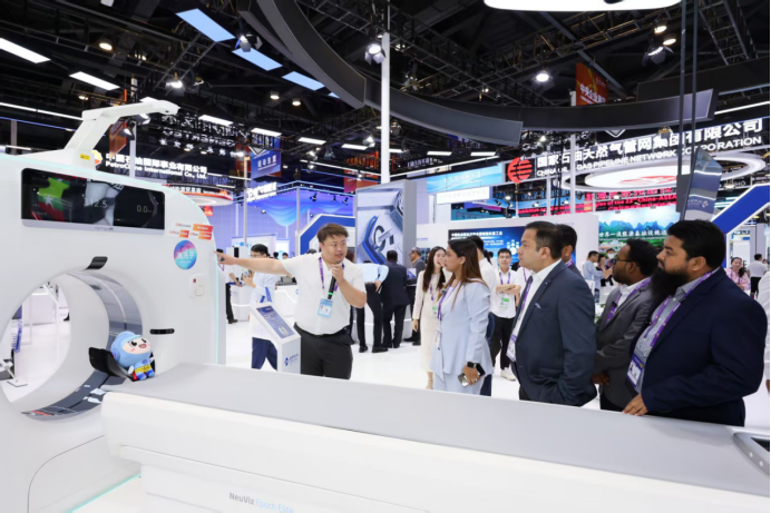 高端裝備領航產業升級:通過打造制造與健康“雙引擎”,集團聚焦東盟“工業化升級”與“醫療體系完善”兩大核心需求,雙線展示硬核裝備實力。通用技術集團戰略投資東軟醫療自主研發的NeuViz Epoch Elite無極系列CT作為全球最快的16cm螺旋掃描CT,憑借著超快的掃描速度和超高清的圖像,吸引了眾多到訪嘉賓的目光。除此以外,通用技術集團暢銷東盟的立式加工中心、全能型鏡面數控火花機、數控插齒機、時柵位移傳感器等實物產品集中亮相。