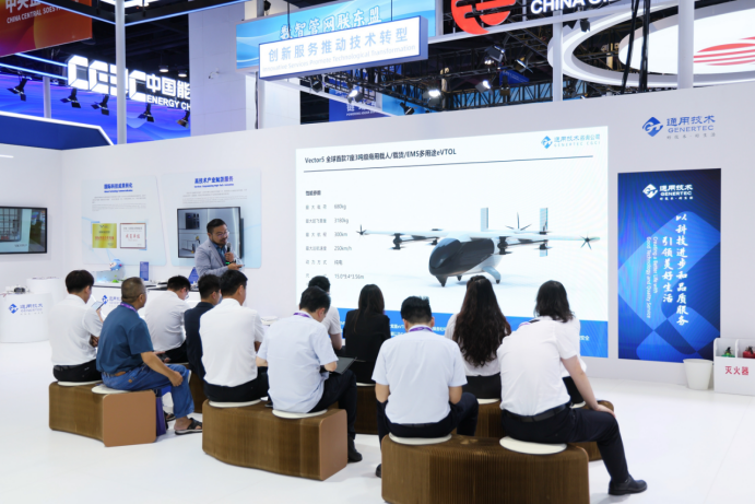 在專題分享會上,通用技術集團將AI的賦能視角延伸至更廣闊的領域。通過高技術產業賦能服務,驅動全球技術匹配與國際科技成果轉化平臺精準鏈接創新資源,講解了備受矚目的“AI+低空經濟”,面向應急航空醫療轉運的自研飛控Vector5電動垂直起降飛行器(eVTOL),以及“AI+呼吸健康”空氣消毒機器人、“AI+醫廢處置”集成解決方案等前沿的科技產業賦能案例,為東盟合作伙伴提供可靠的“好技術”中國方案,帶來產業升級的“好生活”實踐參考。