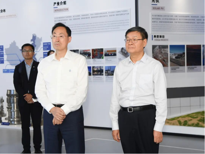 拜訪期間,于旭波、崔志成、賈大風一行參觀了東方電氣科技展示廳,深入了解東方電氣集團產業格局及智能制造最新成果。